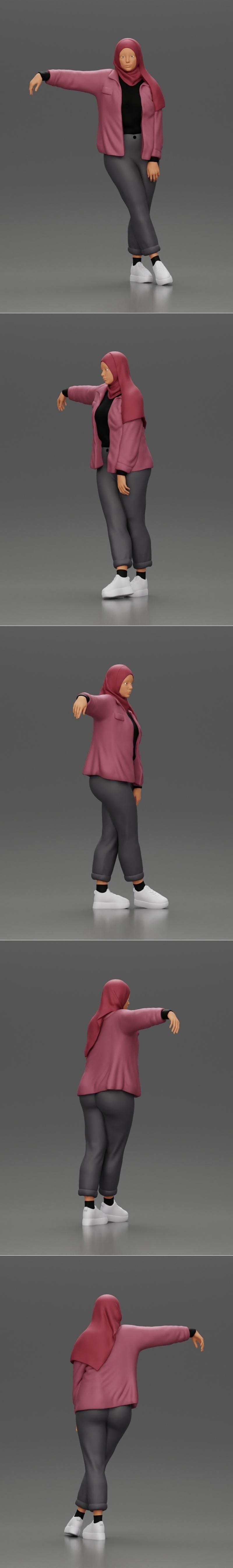 Beautiful Girl in Hijab and Jacket Leaning on the Car with Hand – 3D Print Model STL