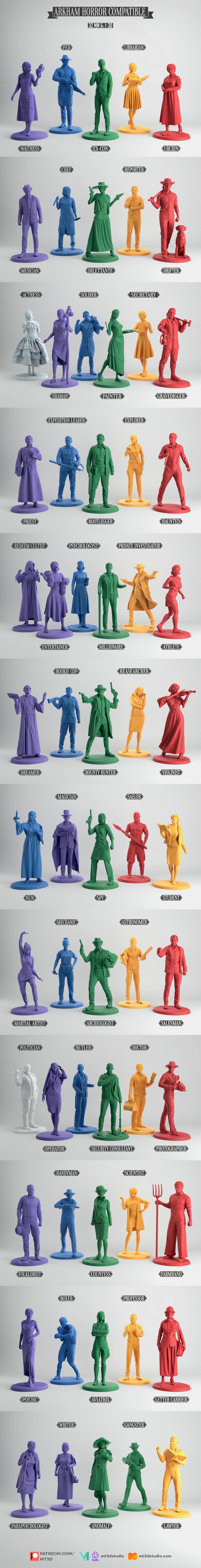MT3D Studio – Investigator Pack of 63 Model – Arkham Horror Compatible – 3D print model STL